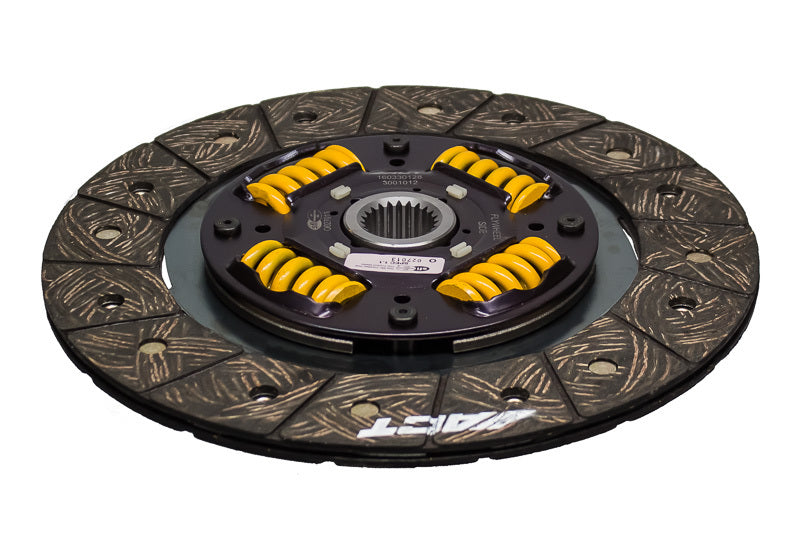 3001012 is a performance street disc and the most popular disc purchased. It features premium organic materials with high copper content for better heat transfer. Performance street discs allow for quicker shifting and smooth engagement. These discs feature a reduced marcel for faster shift action to complement ACT pressure plates. ACT spring-centered assemblies use bushings and cone springs similar to factory clutch discs. This creates frictional dampening, which improves clutch life and reduces noise. Quiet operation with increased strength and reliability.