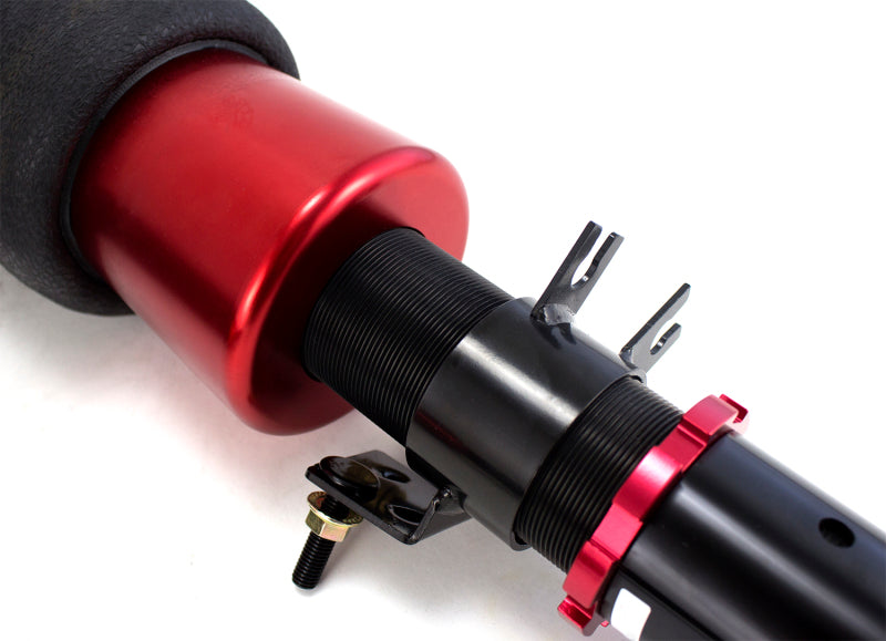 Get the stance you want and the performance you need with Air Lift Performance air suspension kits! Every kit we offer is fully engineered to properly fit your vehicle, provide unmatched static drop, and deliver ride and handling capability that exceeds factory suspensions. No other lowering suspension provides a more versatile package for daily use. Elevate your Nissan's reputation by lowering it...with 5 inches of drop and all the versatility of air suspension. The Air Lift Performance kit is the best choice for show stance AND daily driving. Get the sharp look you crave with the exceptional performance you need! This kit features a progressive rate sleeve style air spring over 30-level adjustable, monotube, threaded body shock with independent ride height adjustment for maximum control. Keep your ride looking sharp with the red anodized, upper mount with high-quality monoball bearing, black chromed steel shock bodies, black anodized lower mounts, and bright red anodized aluminum end caps and locking rings. Earn some well-deserved attention for your Nissan and grab up an Air Lift Performance kit today!